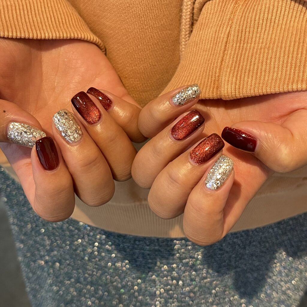 キラキラのラメや、見る角度で色味が変わるマグネットネイルは、大人っぽさの中にちょっとした遊び心もあって、とってもお気に入りです✨