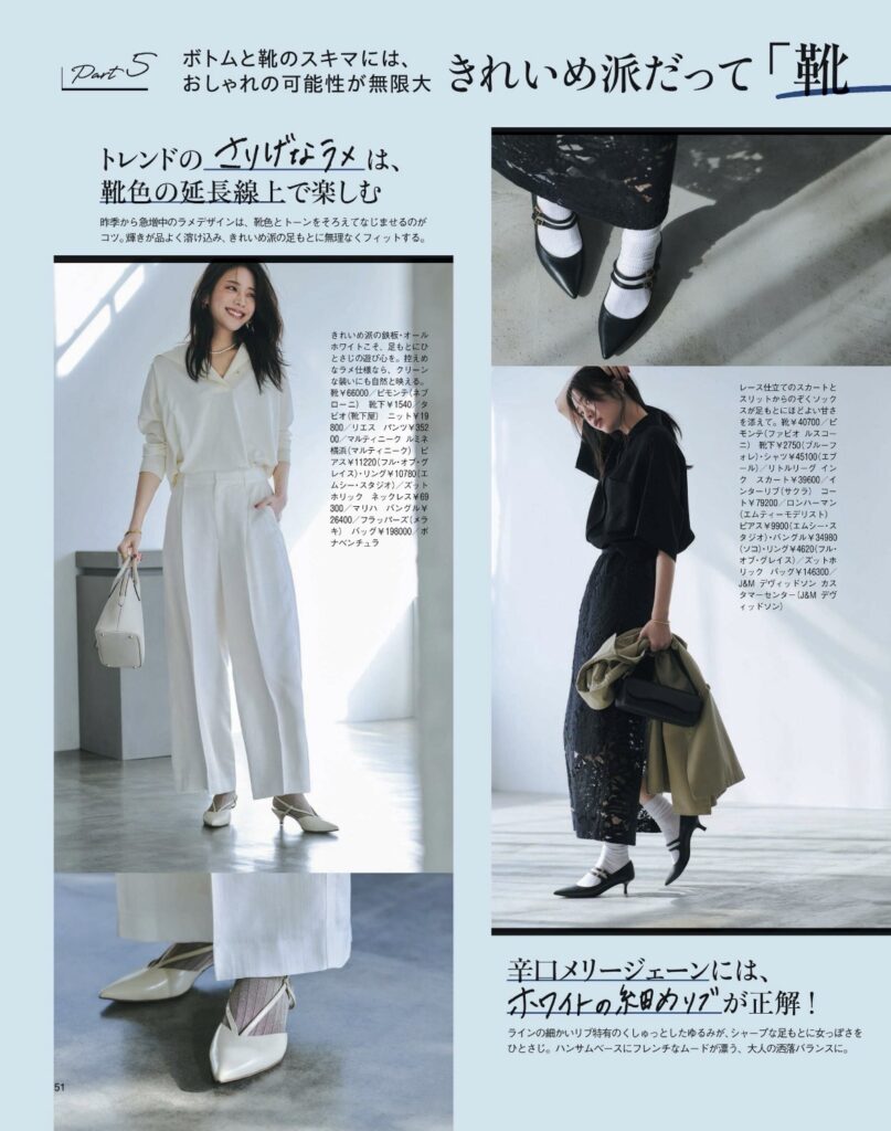 素材やシルエットで今っぽさを足すのがポイントです。